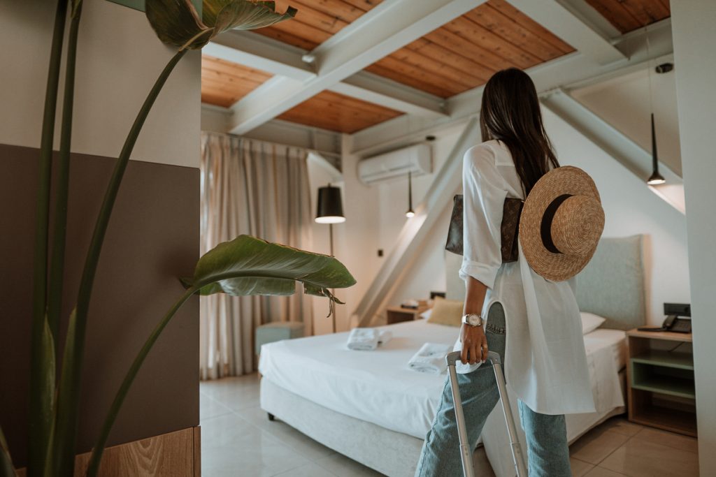 Τα δίκλινα δωμάτια με μερική θέα στη θάλασσα είναι φωτεινά και κλιματιζόμενα.